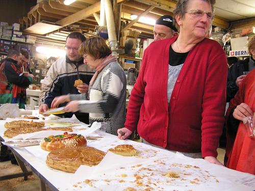 A 10 h 15, rendez-vous à l’atelier AVMB mis à disposition par Jean-Yves. Le gros poêle à bois a été très apprécié par toute la troupe qui commençait à grelotter. Les galettes bien chaudes préparées par Josette et Marie-Louise, agrémentées du vin chaud de Marie-Line nous ont bien réchauffé.
